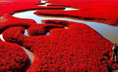 가을이면 해변이 온통 붉은색으로 덮혀 멋진 장관을 보여주는 '판진 적색 해변(Panjin Red Beach)'이 있다.